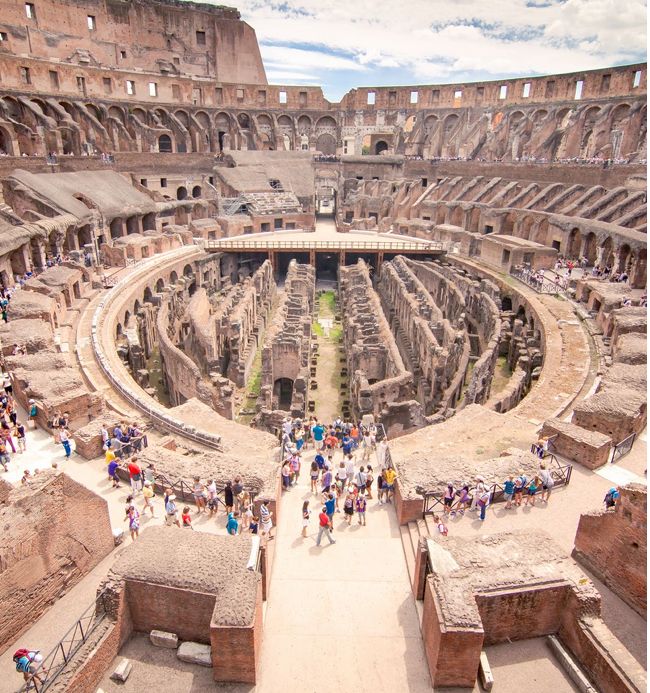À tarde, vá ao ponto de encontro C às 14h15**, no Parco Colle Oppio (Via delle Terme di Tito, esquina com Via Nicola Salvi). Descubra a Colina Palatina, berço de Roma. Visite o Coliseu, símbolo da cidade, construído para espetáculos de gladiadores.